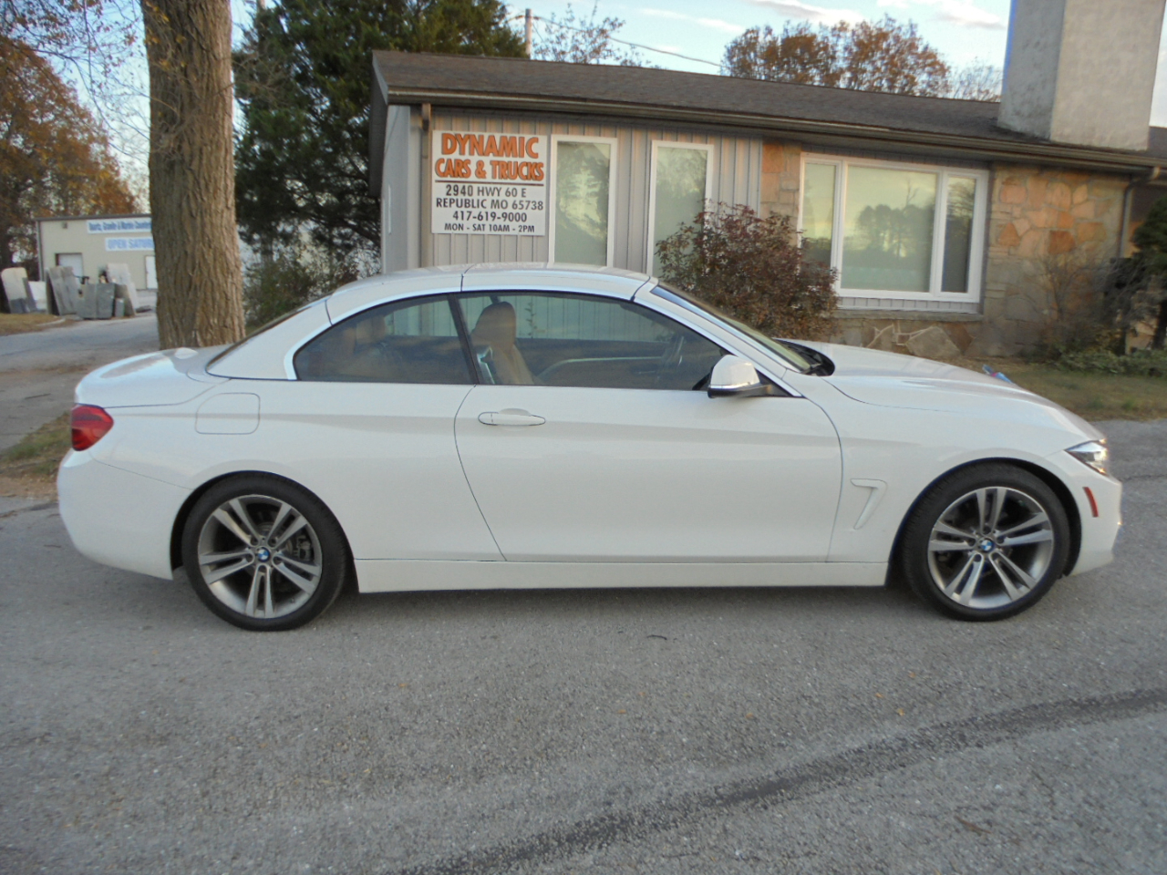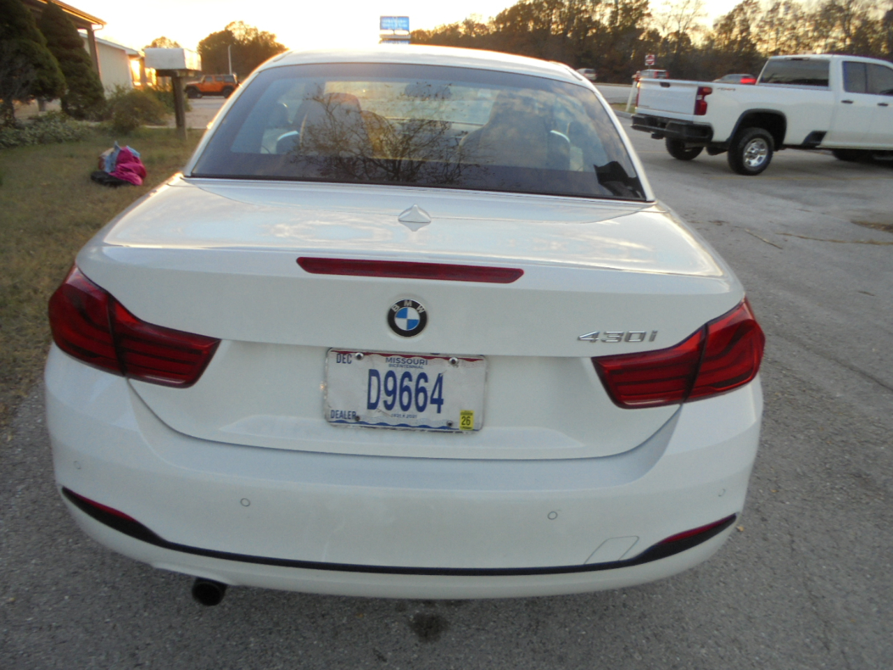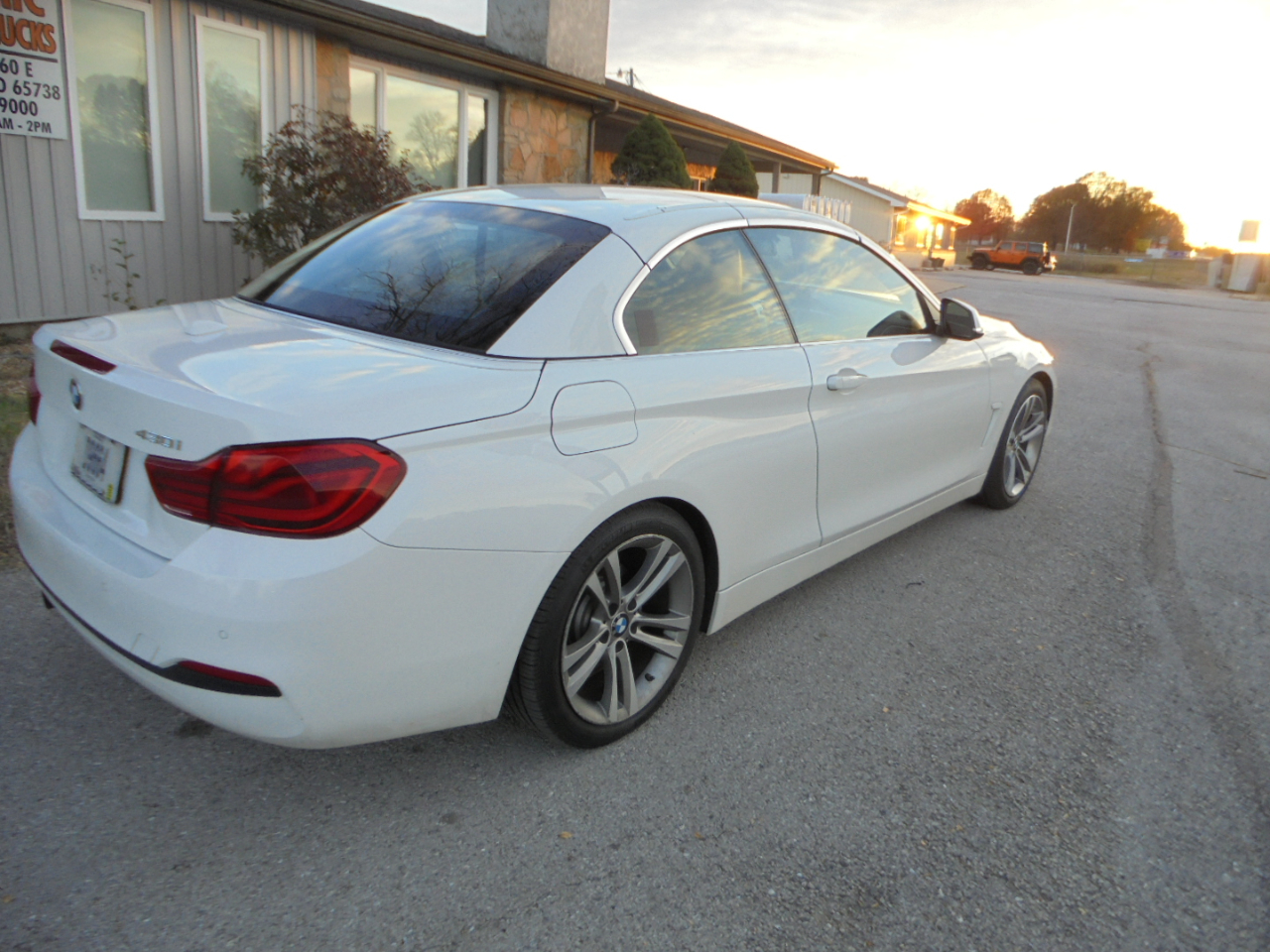 This 2018 BMW 430i Convertible with retractable Hardtop is a Clean Car Fax vehicle with only 52k miles. This BMW 430i is immaculate inside and out as it comes well equipped with an Automatic transmission, 4 cylinder Turbo Engine, Dual power seats with Leather Interior, Keyless entry with push button start, A/C, power windows, Cruise Control, Alloy wheels, am/fm stereo with blue tooth, and sonar sensors with a back up camera. Theis car drives out wonderfully and was traded in at my dealership on a newer SUV. Please call 417-619-9000 with any questions or to set up an appointemt for a test drive.